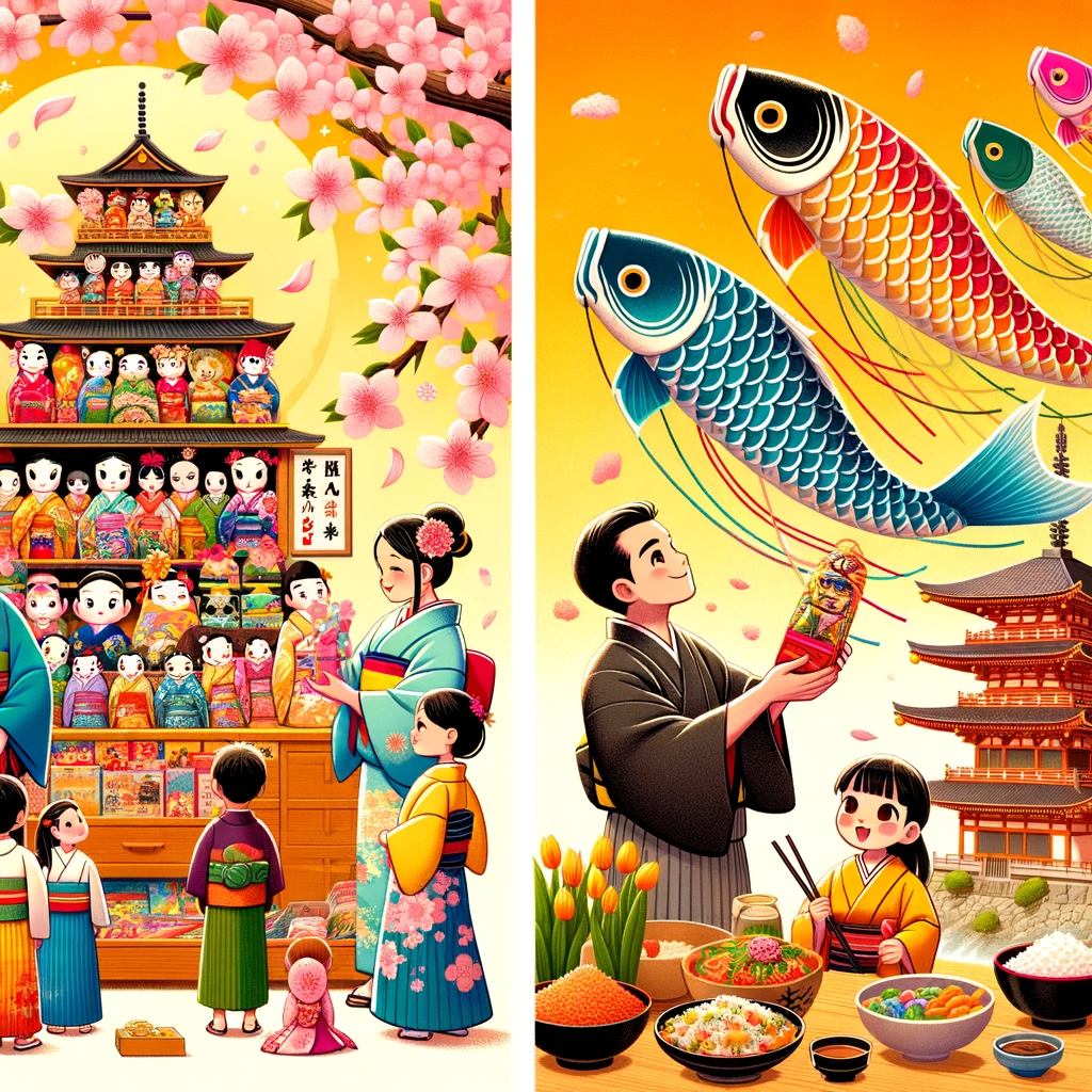일본에서는 어린이날이 두 가지로 나뉩니다. 3월 3일은 여자아이를 위한 히나마쓰리(Hinamatsuri), 5월 5일은 남자아이를 위한 단고노셋쿠(Tango no Sekku)로 각각 기념됩니다.