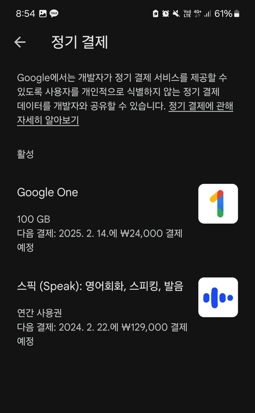 휴대폰을 사용하다보면 정기 결제로 사용하게 되는 것들이 있는데