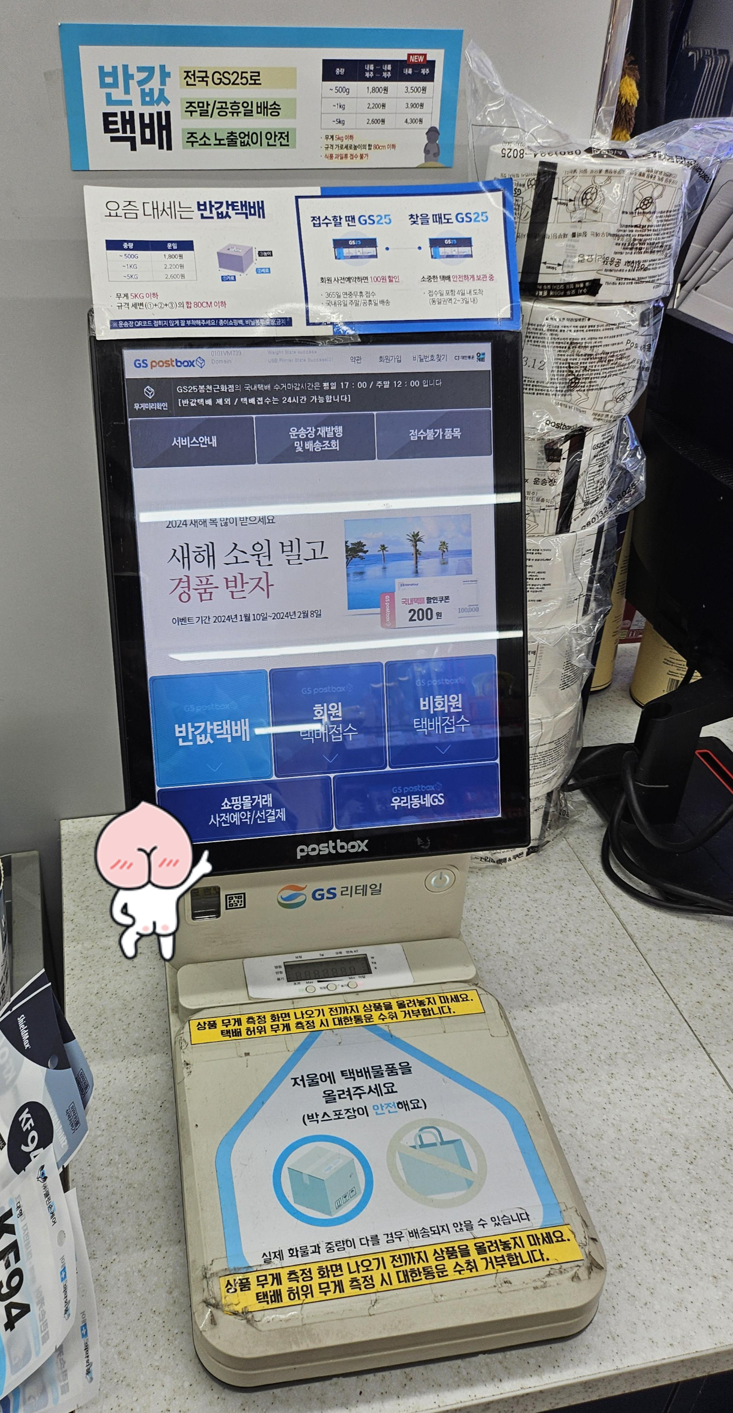 출력된 운송장을 택배에 붙여서 카운터에 가져가서 계산하면 끝.