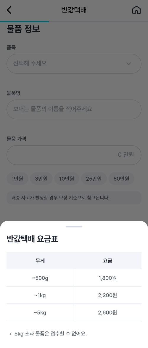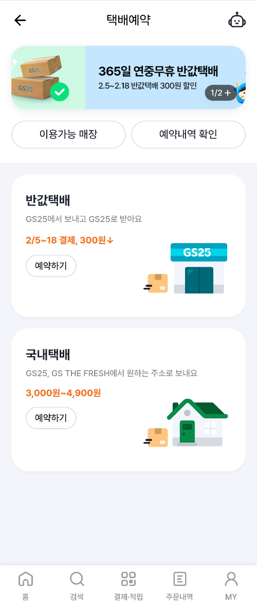 택배 예약으로 들어가면 반값택배, 국내 택배 중 원하는 것을 선택하면 된다.
